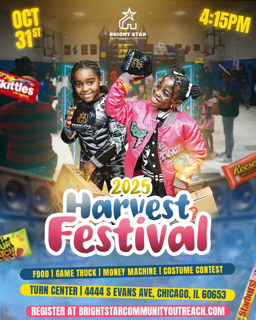 We established our annual Harvest Festival with a strong commitment to providing a safe and enjoyable experience for our youth. This event offers an array of FREE entertainment, delicious food, exciting games, and numerous other activities and resources. To secure your spot, please click the button below to register. Registration is mandatory to attend this event.