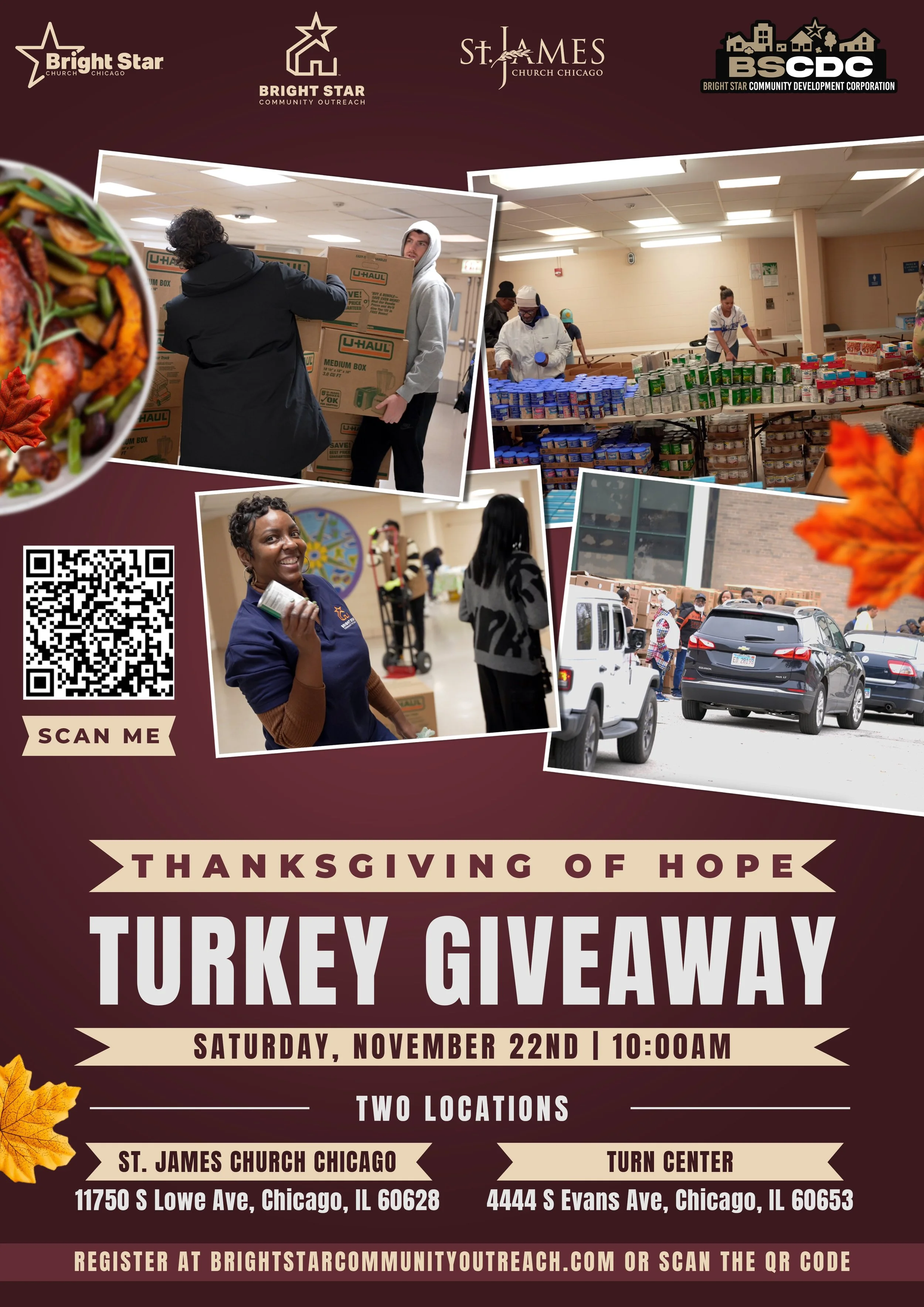 We're excited to announce our annual Turkey Giveaway, and we’d love for you to be a part of it! If you or someone you know could use a little extra support this holiday season, sign up today to reserve your turkey and enjoy a special meal with family and friends.